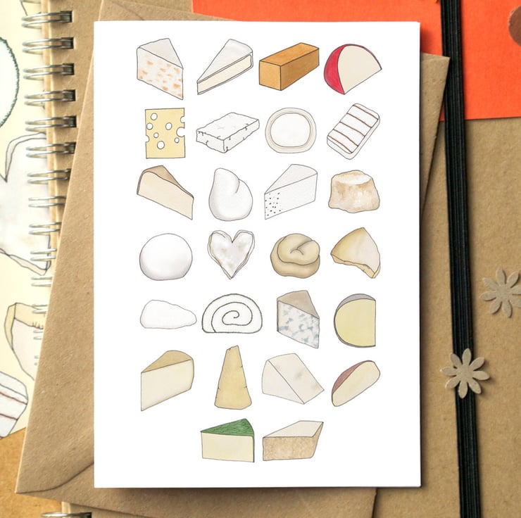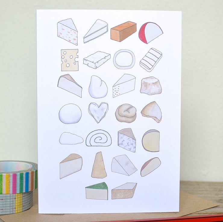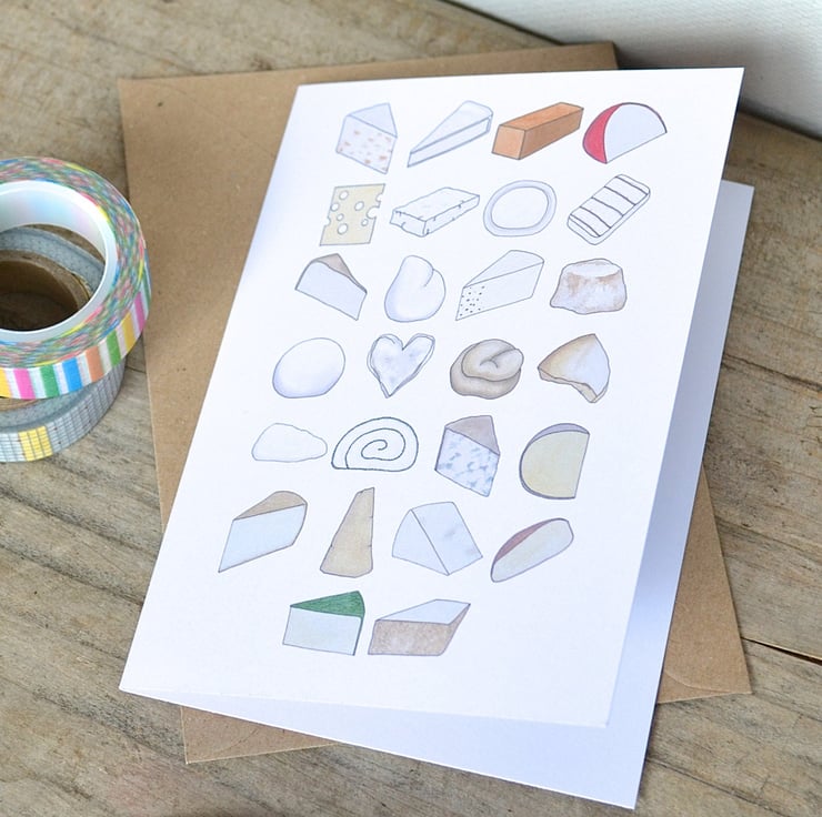 Printed from my original illustration, each little cheese was drawn by hand and coloured using watercolour paint.