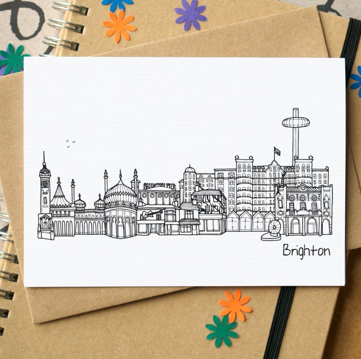 A blank card featuring a lovely cityscape illustration of some of Brighton and Hove's skyline, including all it's greatest landmarks.