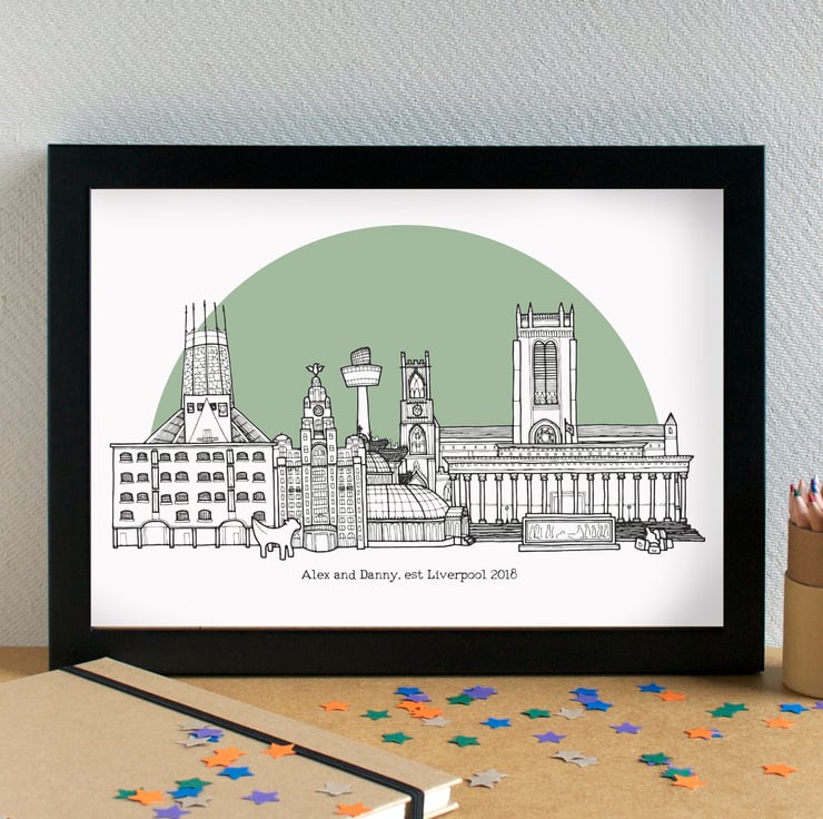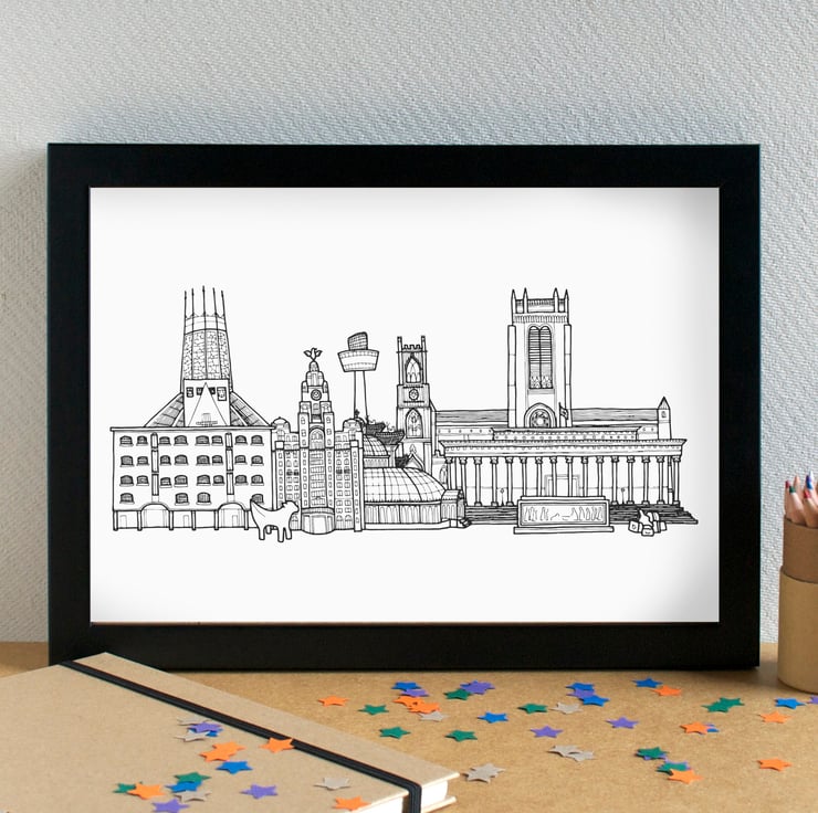 Great as a gift for any Scouser, or as a gift for someone moving to or from Liverpool. This Liverpool cityscape drawing would also make a wonderful graduation gift.