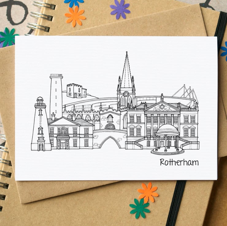 Great as a card for anyone from Rotherham, or as a card for someone who loves Rotherham. It could also make a lovely wedding or engagement card - or a momento to mark a new home perhaps.