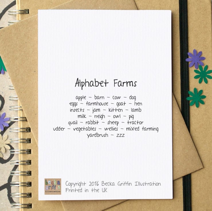 Full list on the reverse; blank inside. Printed from my original illustration onto a smooth recycled white card.