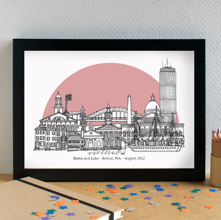 Great as a gift for any Bostonian, or as a gift for someone who loves Boston. It could also make a lovely wedding, engagement or graduation gift, and can be personalised with names and a date.