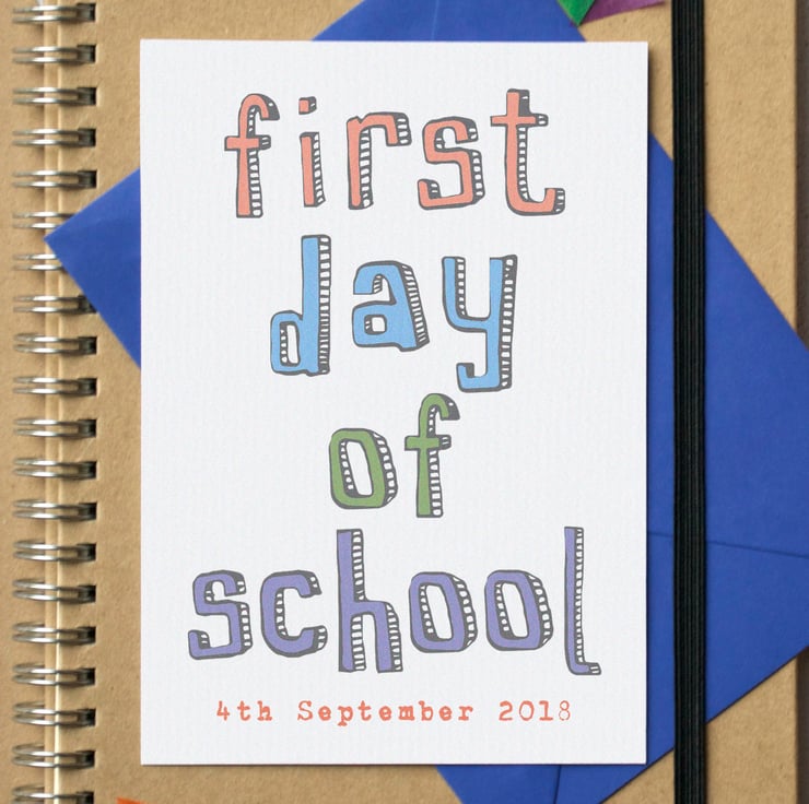 A card for any child who's just about to start school. Great for their first day of school - complete with the date on the front as a momento.