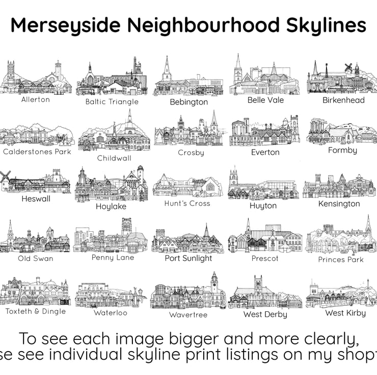 For more information about each of the illustrations (and the landmarks featured in the image) please check the individual listings for the co-ordinating prints.