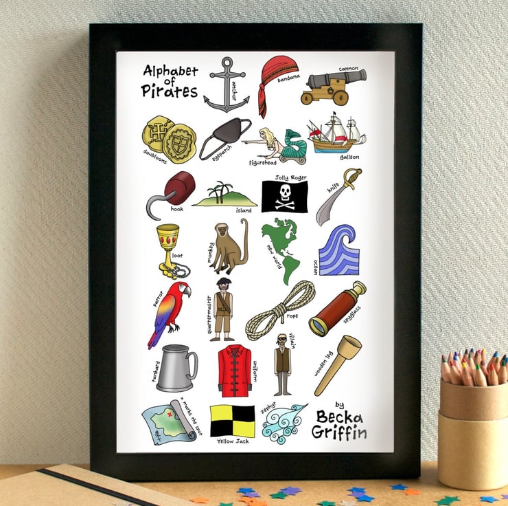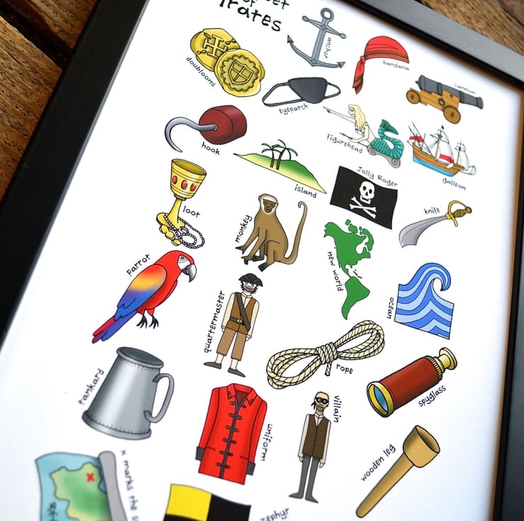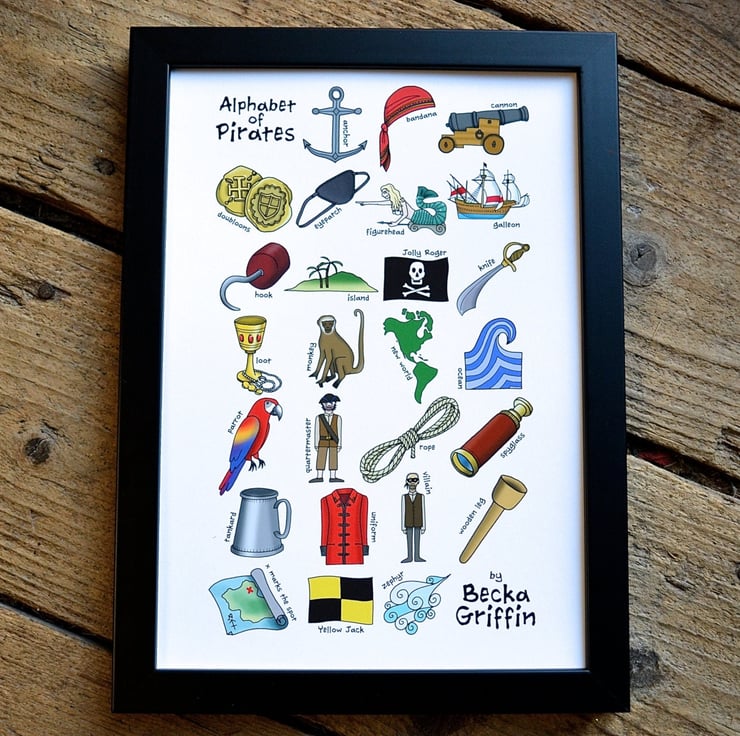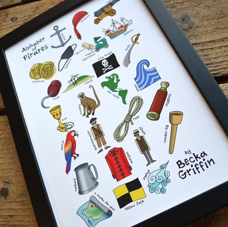 A fabulous illustrated Alphabet, featuring all things pirate-related!