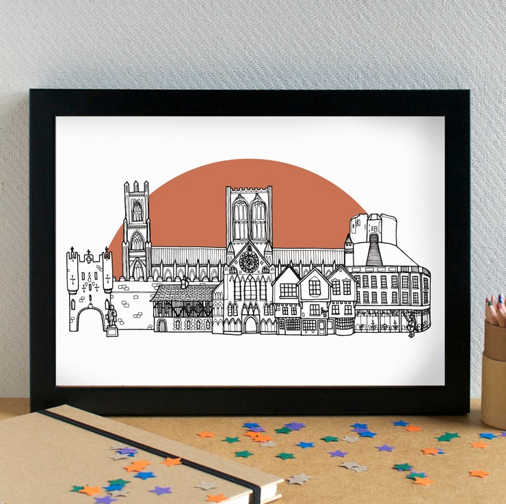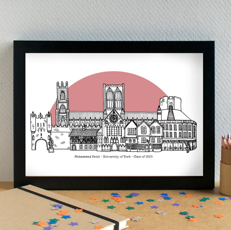 A beautiful print of my skyline illustration of the most famous contemporary landmarks in York.
