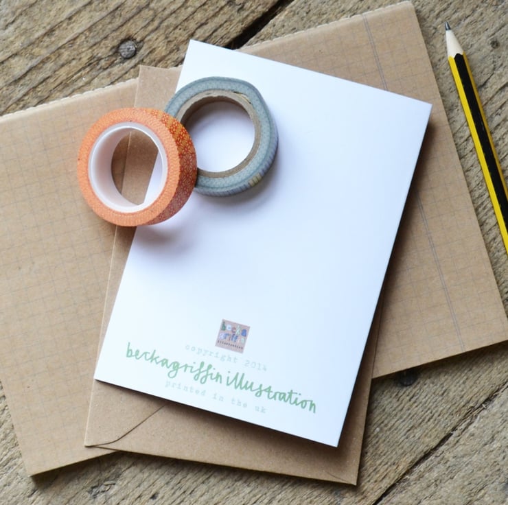 Size approx 148mm x 105mm; cornflower blue envelope slightly larger.