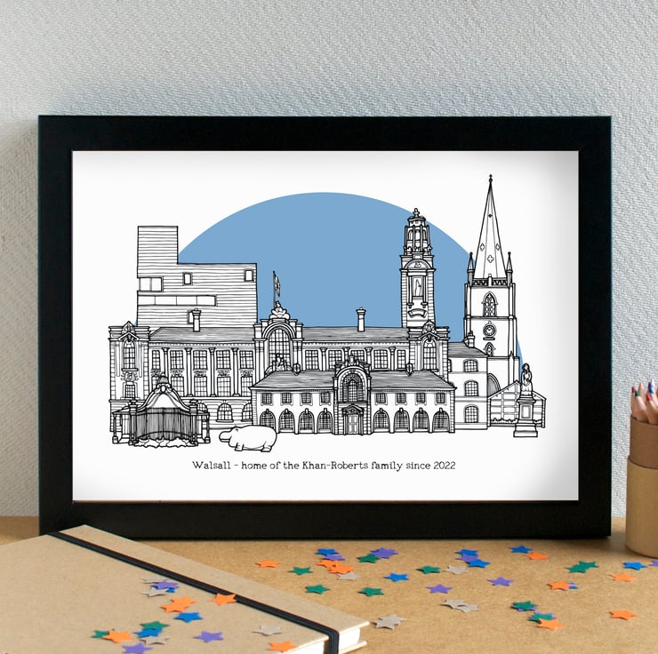 Great as a gift for any Walsaller, or as a gift for someone who loves Walsall. It could also make a lovely wedding, engagement or new home gift, and can even be personalised with a single line of text to the bottom of the image.