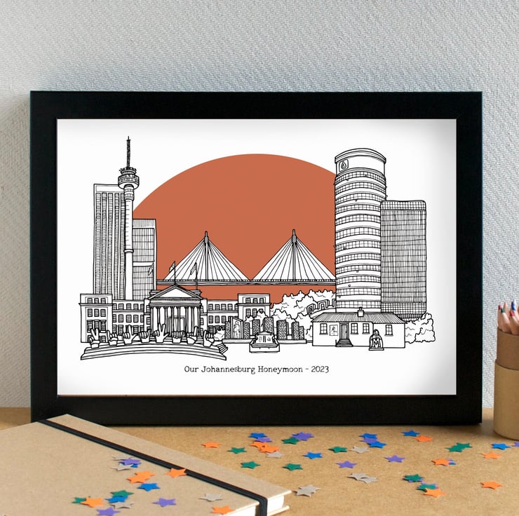 Great for any Joburger, or as a gift for someone who loves Johannesburg. It could make a lovely wedding, engagement or graduation gift, and can be personalised with names and a date.