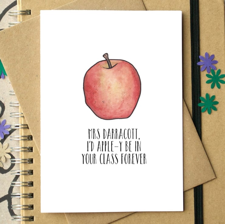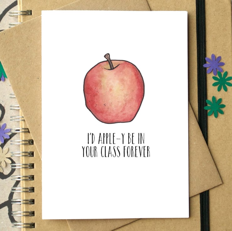 A funny card to say thanks to a special teacher - whose class you'd "apple-y" stay in for an extra year!