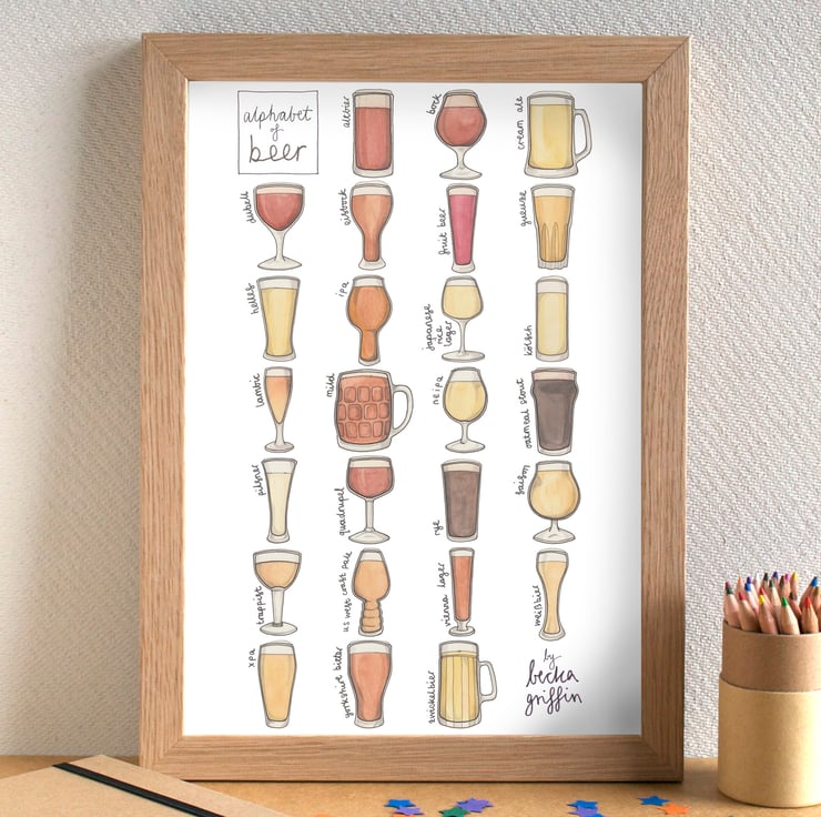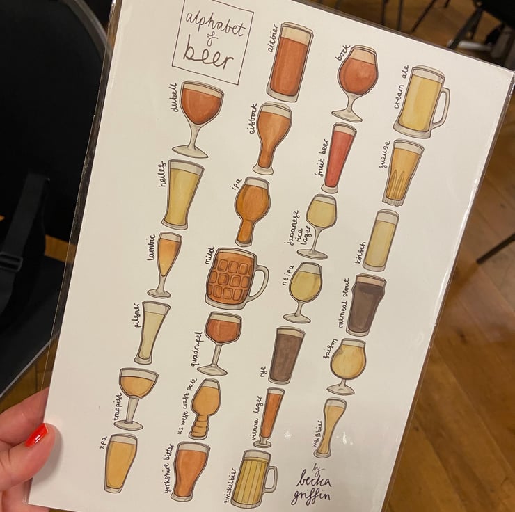 A fabulous alphabet print, featuring a full A-Z of different types of beer!