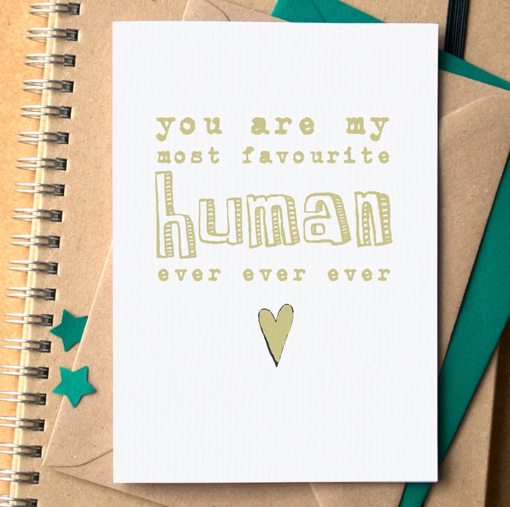 If you'd like a name adding to the card (so it reads "name you are my favourite human ever ever ever") then please choose and pay for the personalised option.