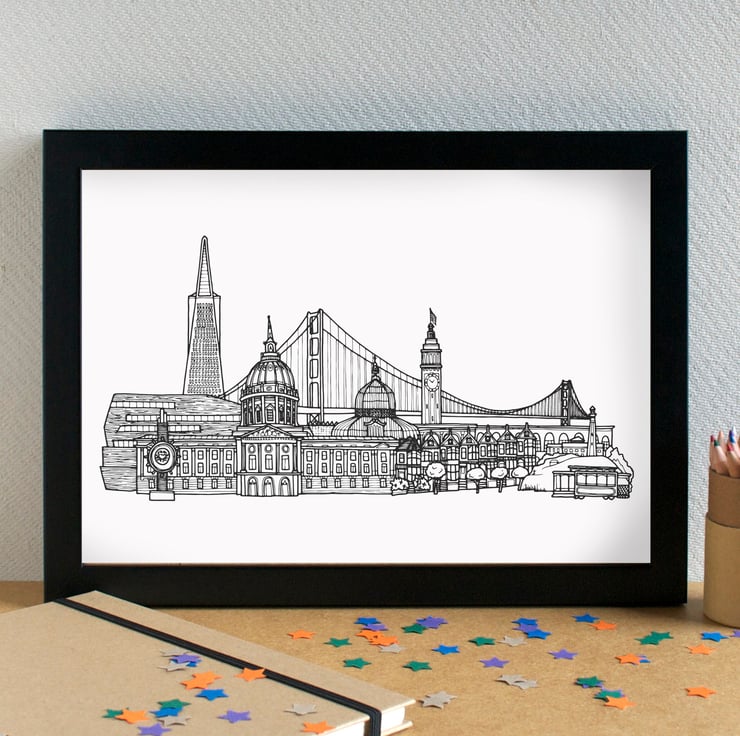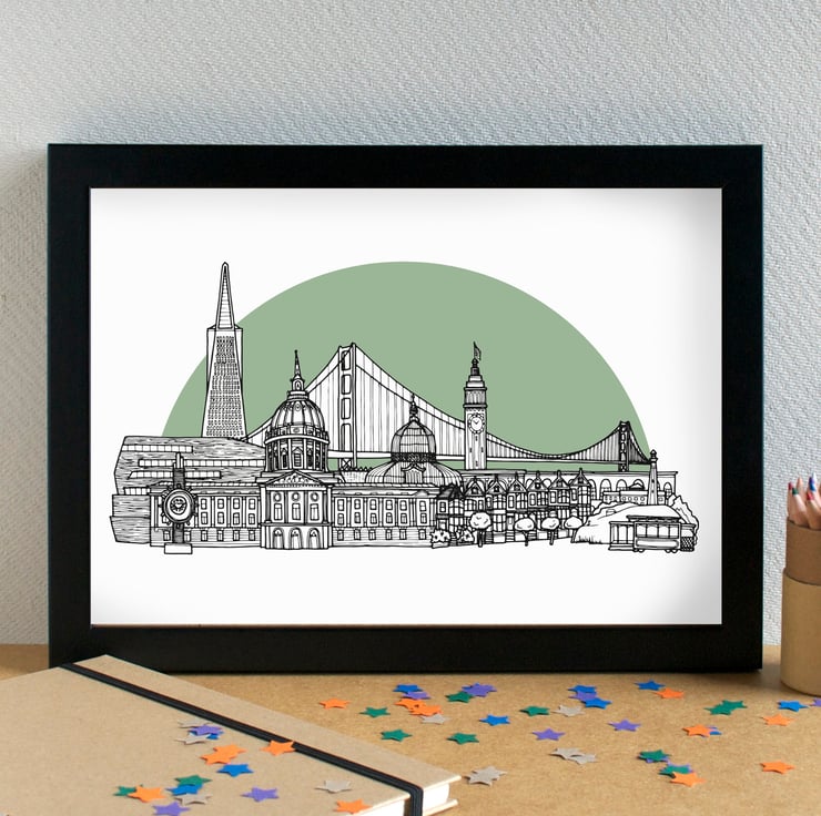 A gorgeous art print of my skyline illustration of the most famous landmarks in San Francisco.