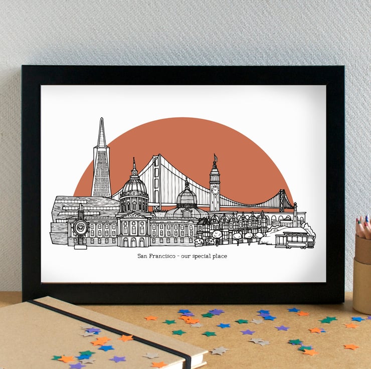 Great as a gift for any San Franner, or as a gift for someone who loves San Francisco. It could also make a lovely wedding, engagement or graduation gift, and can even be personalised with names and a date.