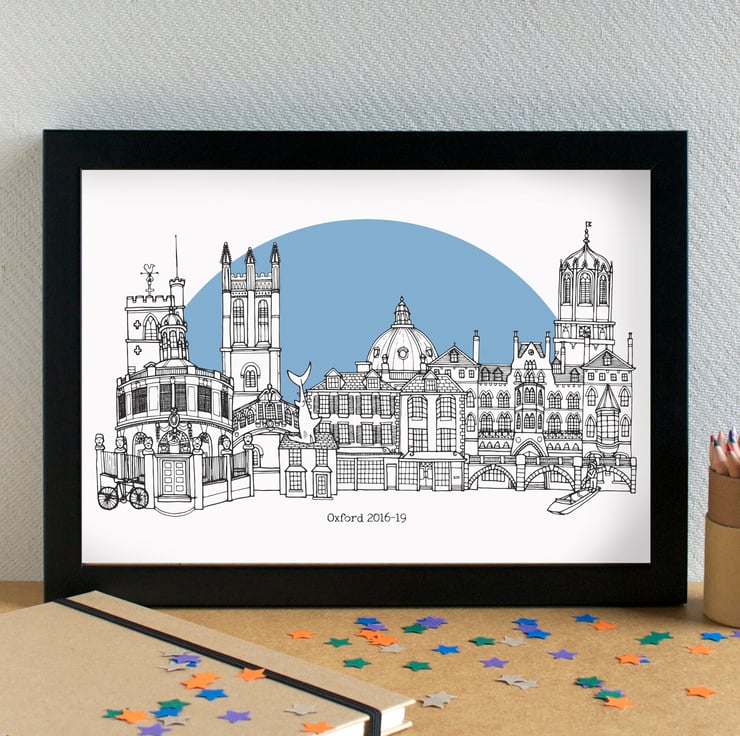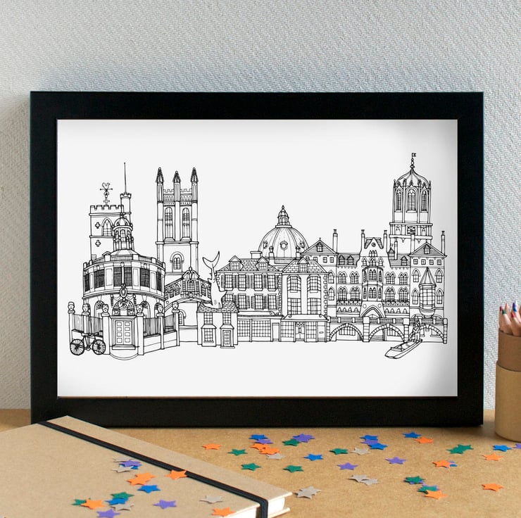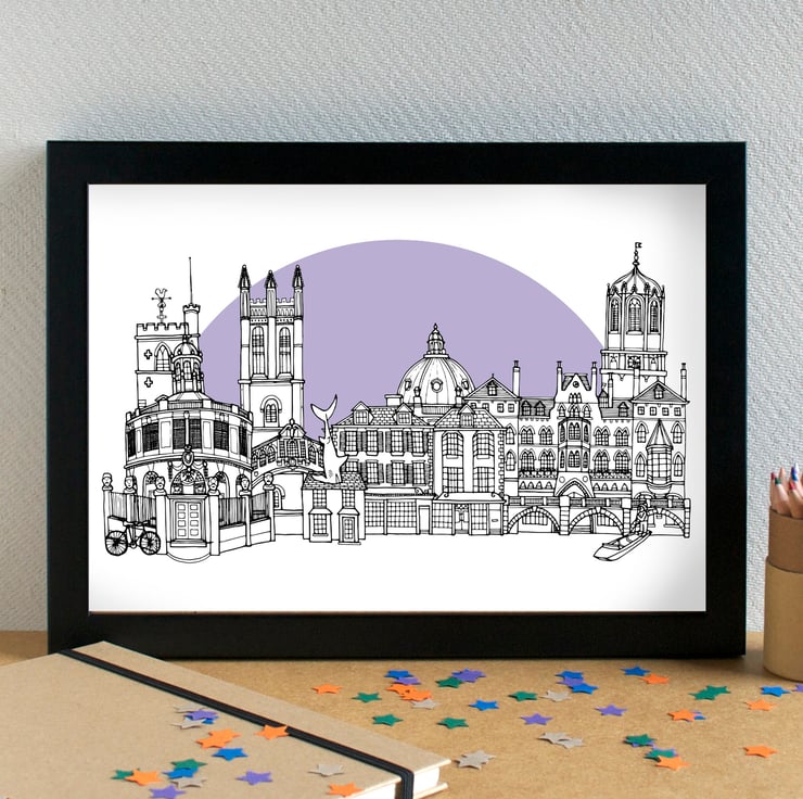 A lovely detailed print of my illustration of the most famous contemporary landmarks in Oxford.