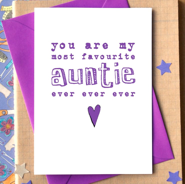A lovely little card for your Auntie, featuring the phrase "You Are My Very Favourite Auntie Ever Ever Ever".