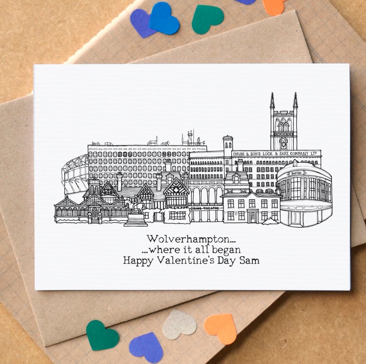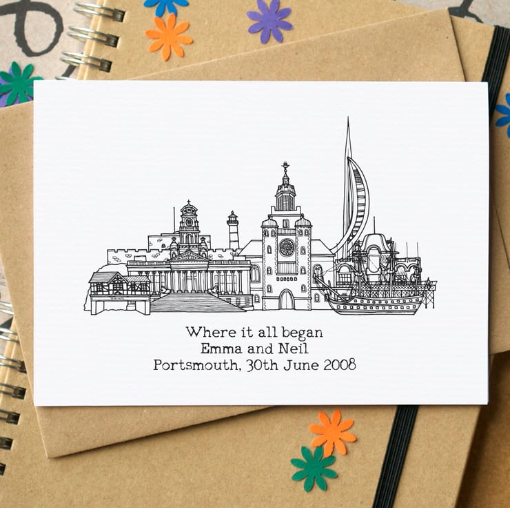 A special Valentine's or anniversary cityscape card - with your choice of city skyline, and wording underneath celebrating the place and date the couple first met.