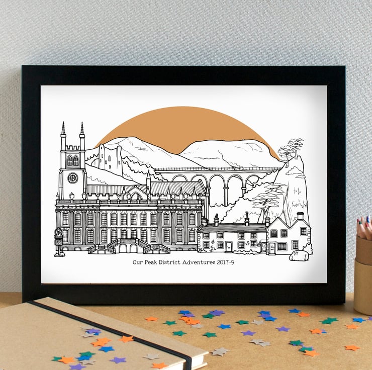 A stunning print of my illustration of the most famous landmarks in the Peak District National Park.