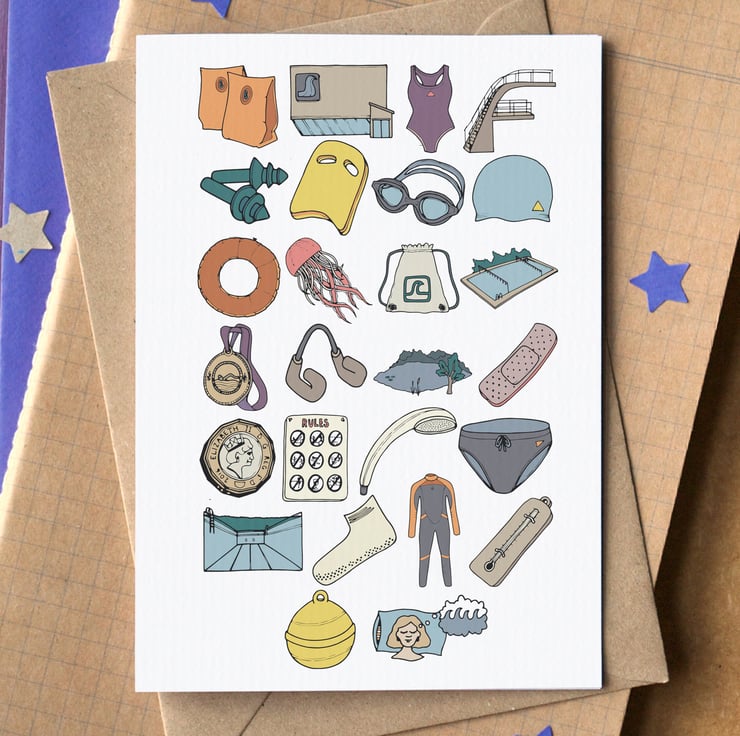 This would make a great birthday card for anyone who enjoys a swim - whether they wild swim 10k every weekend, or have the occasional splash down the local baths!