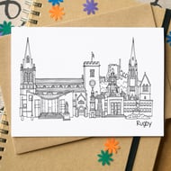 A pretty print of my skyline illustration of the most famous landmarks in Manchester.
