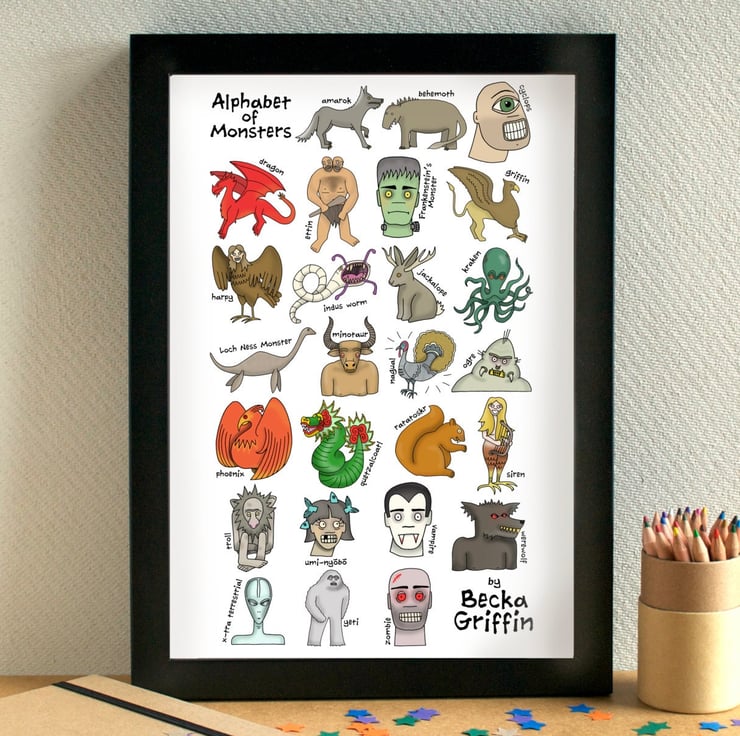 A fabulous monster alphabet, featuring a truly monstrous collection of creatures.