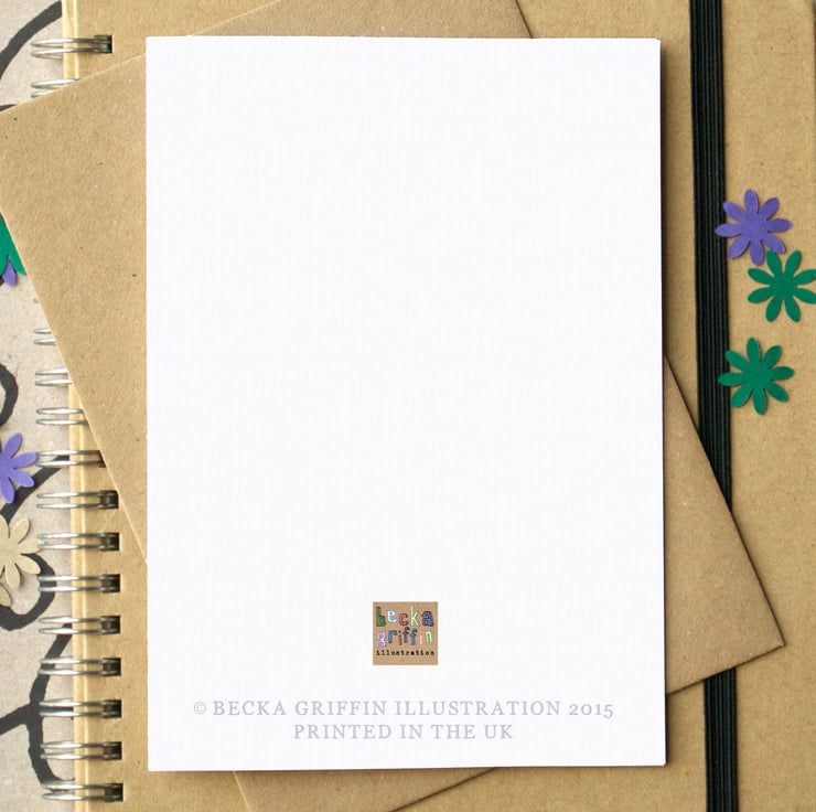 Printed from my original illustrations onto a 100% recycled white card. Blank inside.