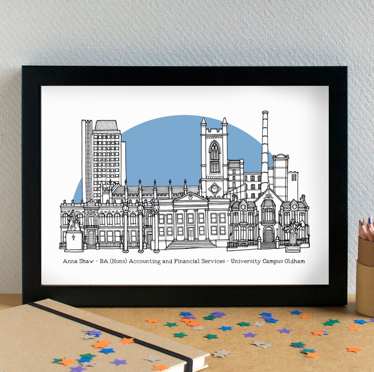 Great as a gift for any Oldhammer, or as a gift for someone who loves Oldham. It could also make a lovely wedding, engagement or graduation gift, and can even be personalised with names and a date.
