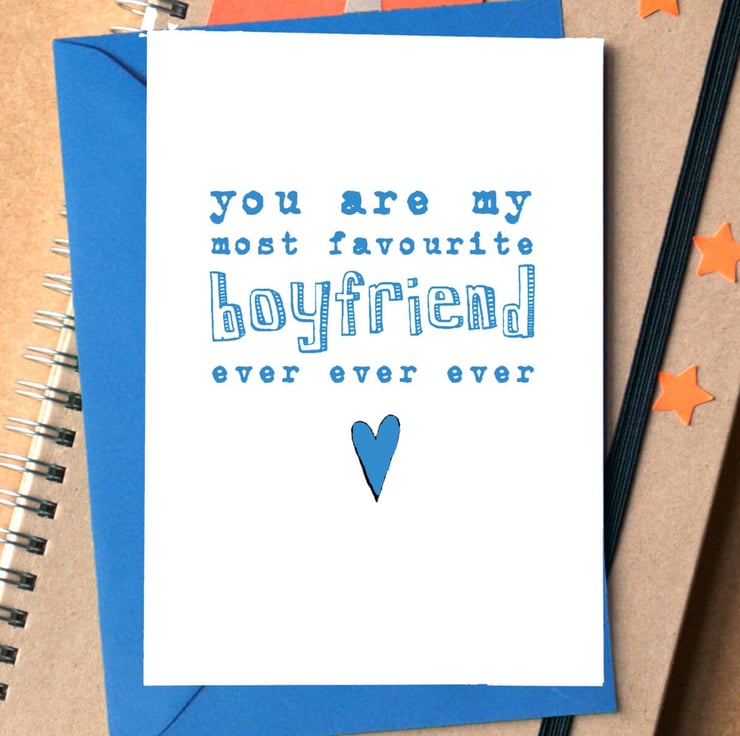 A lovely little card for your boyfriend, featuring the phrase "You Are My Most Favourite Boyfriend Ever Ever Ever".