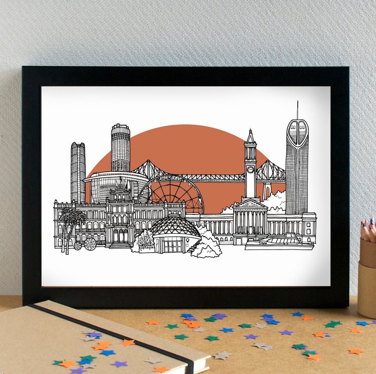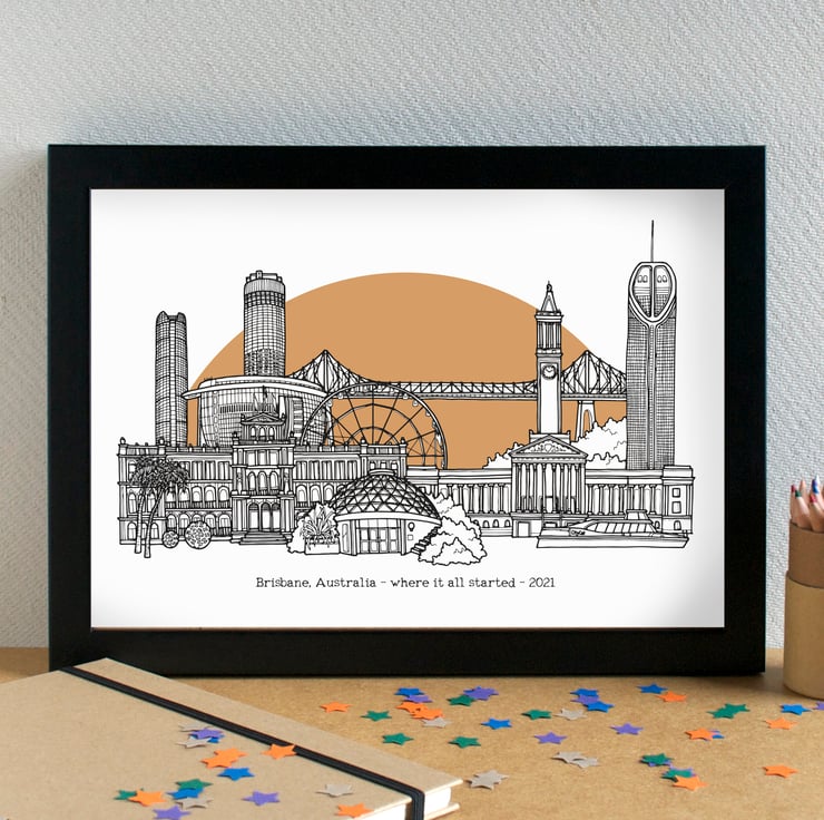 Great as a gift for any Brisbaner, or as a gift for someone who loves Brisbane. It could also make a lovely wedding, engagement or graduation gift, and can be personalised with a line of text to the bottom.