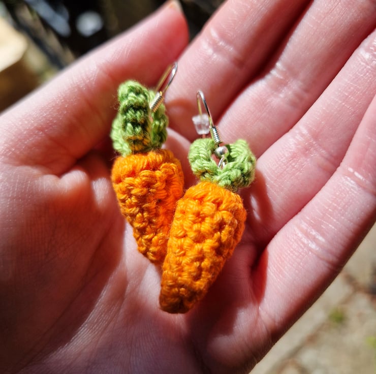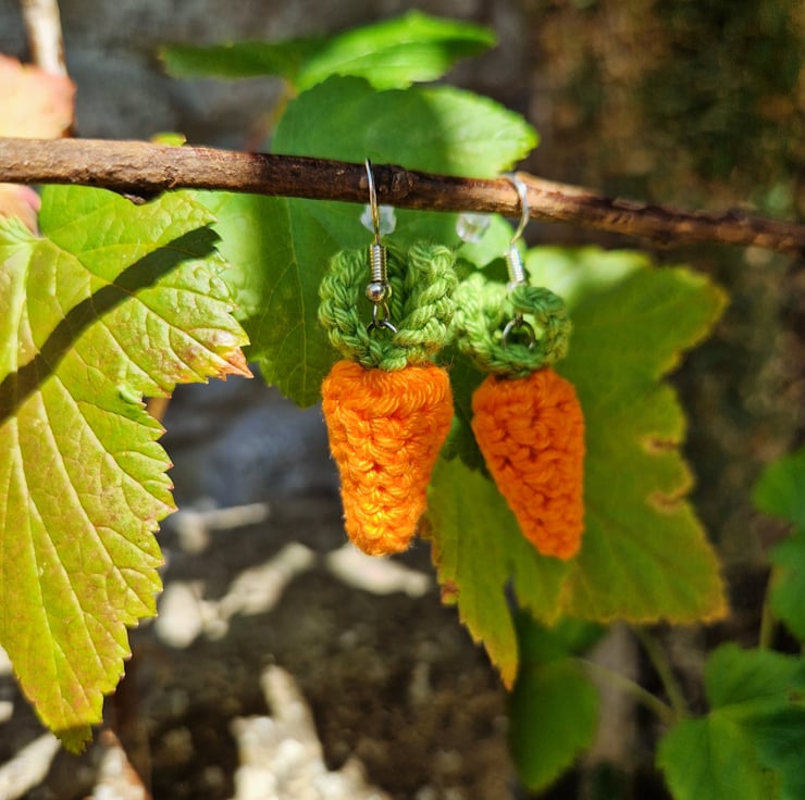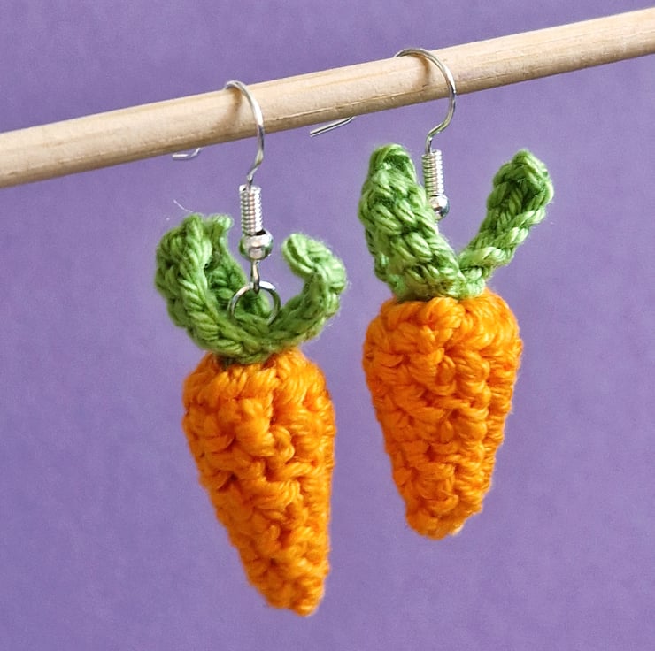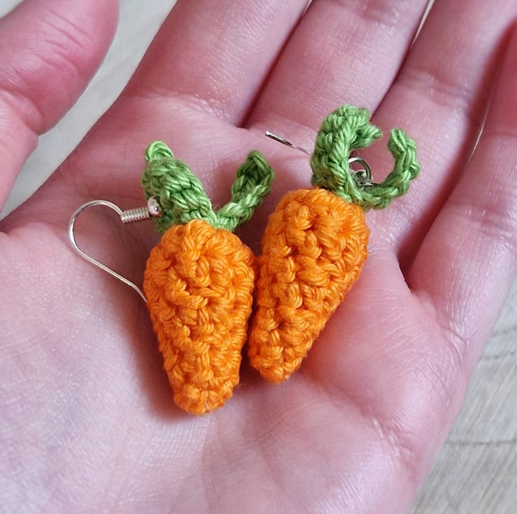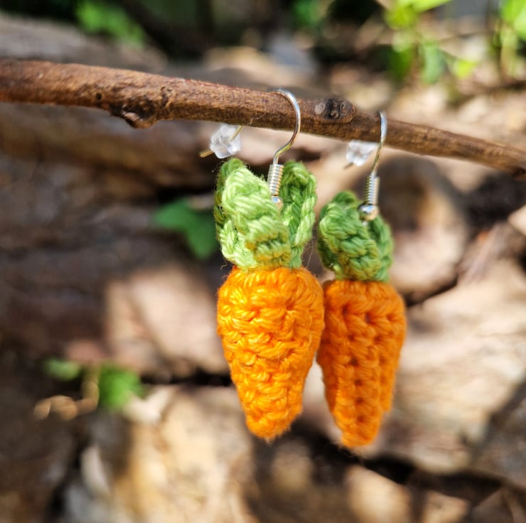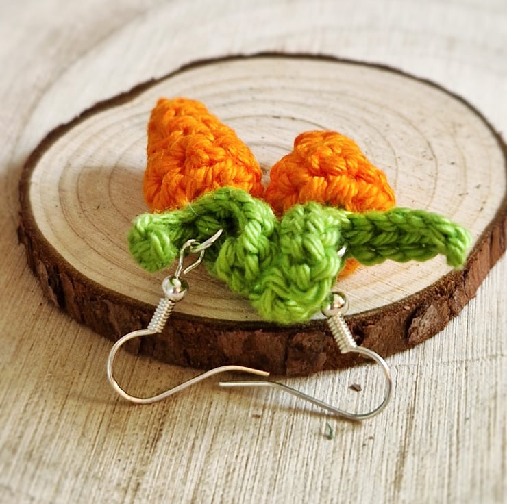 Carrot earrings; an adorable unique accessory for any outfit! The carrots are handmade from lightweight cotton, and the earrings are silver plated hooks. Thank you for visiting SquirrelScribbles!
