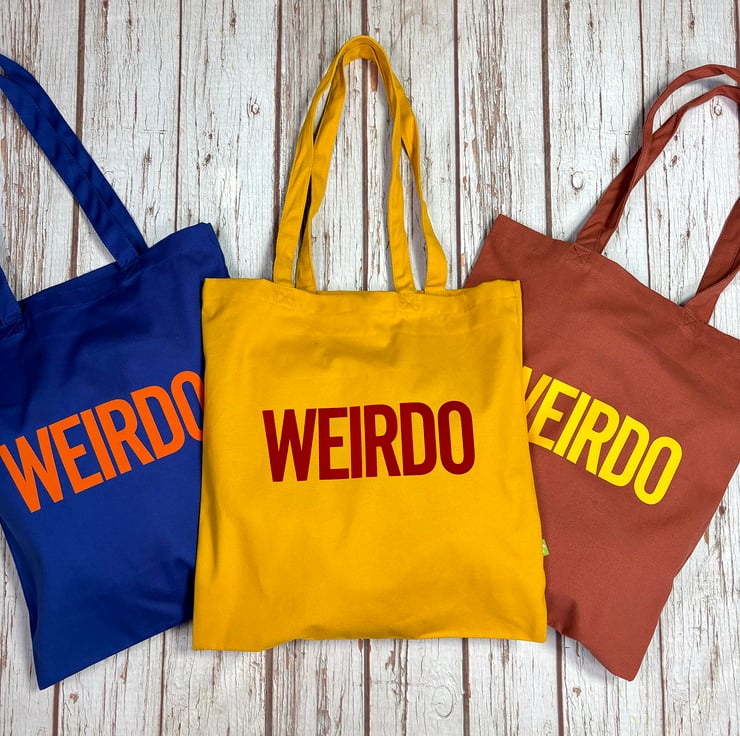 All the best people are weirdos, right? Well now you can shop proudly with these thick organic cotton canvas tote bags. They are a really great heavy weight and feel very strong and sturdy.