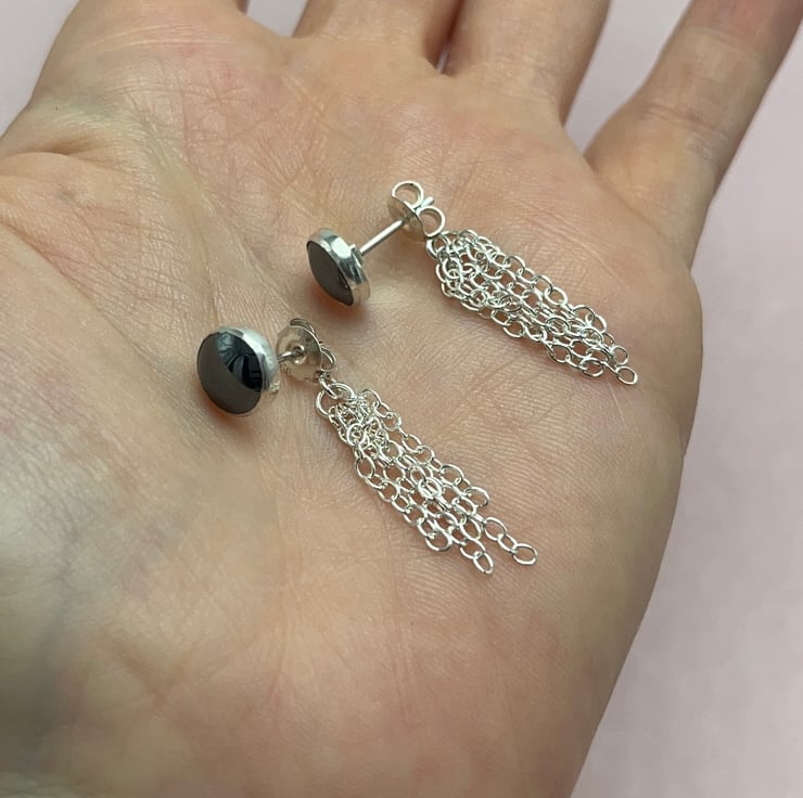 Hematite Disco Earrings- Handmade, Sterling Silver