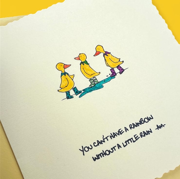 A bright yellow and cute inspirational duck themed card with a meaningful quote to send to cheer someone up, let them know they have a friend or that you’re thinking of them.