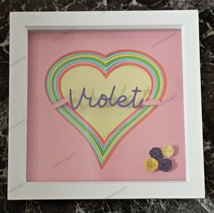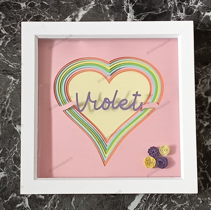 Girls personalised 3d box frame, the heart is layered with different colours for the 3d effect