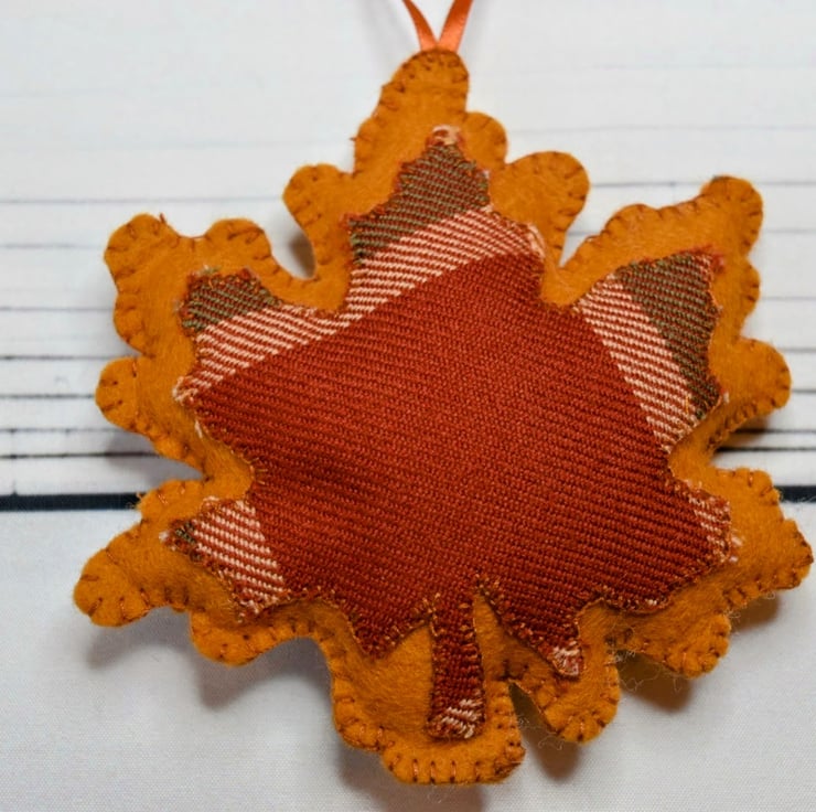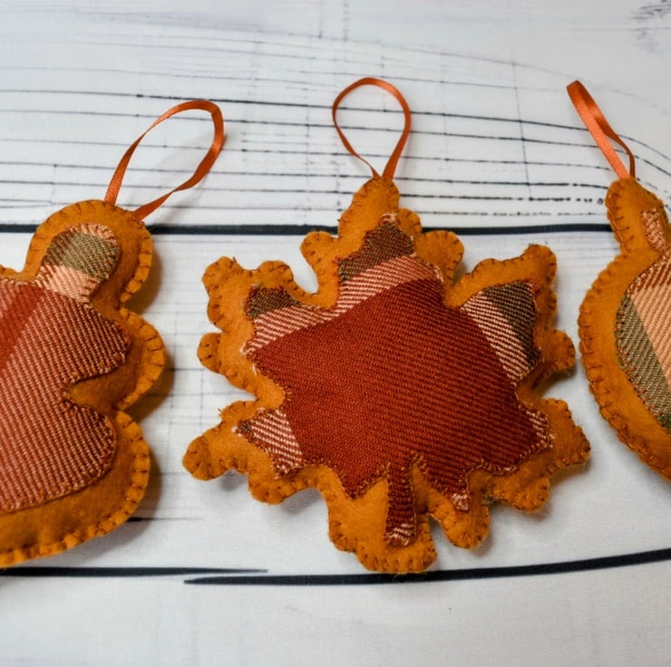 Hand-stitched Autumn Leaf Hanging Decorations - set of 3