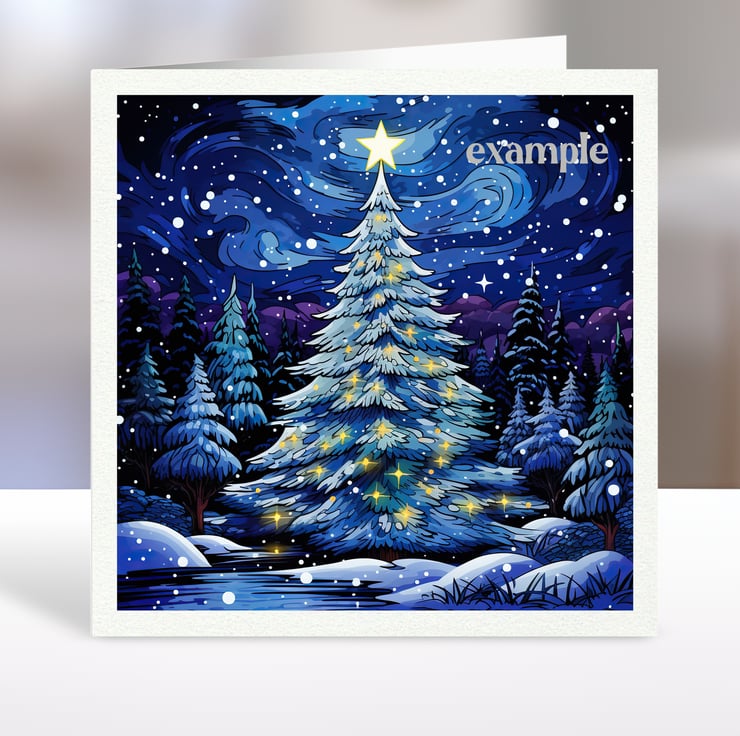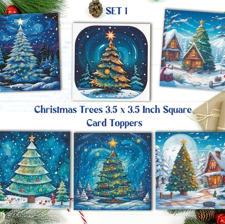 A set of six 3.5 inch square card toppers - Christmas Trees - Set 1 of 2