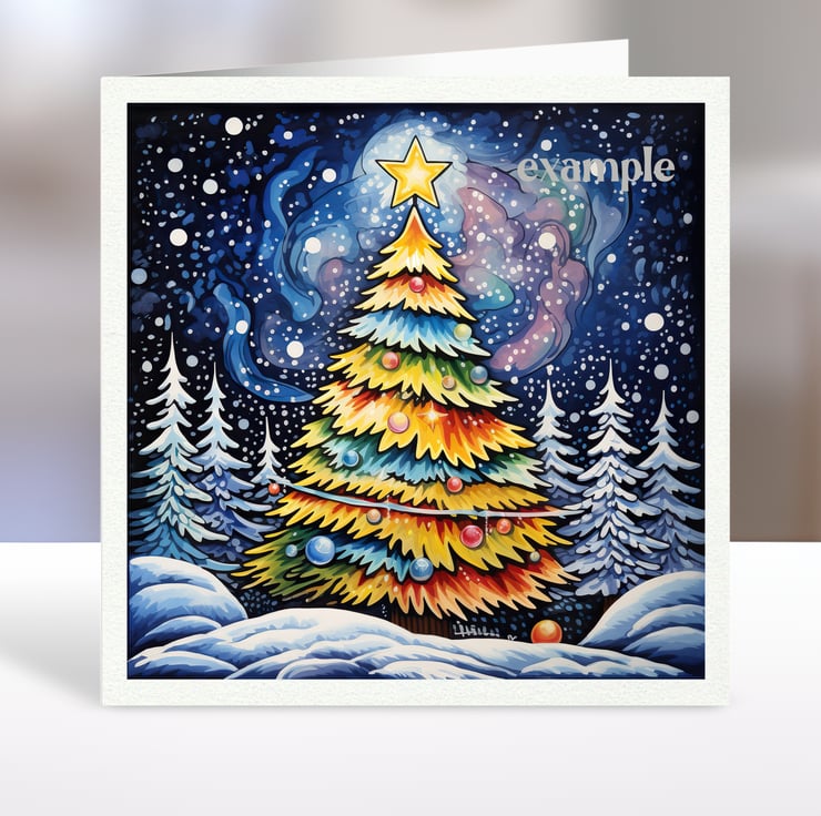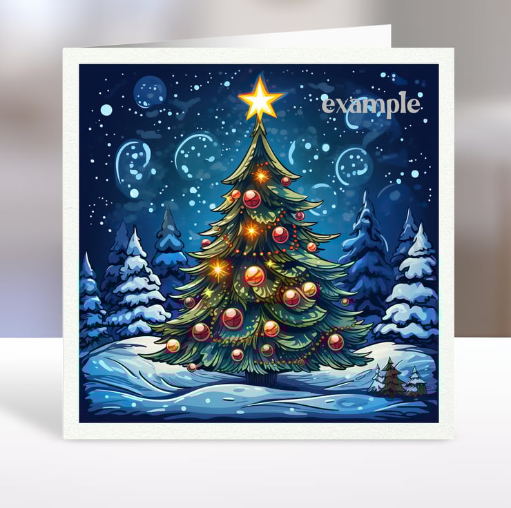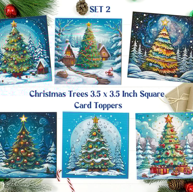 A set of six 3.5 inch square card toppers - Christmas Trees - Set 2 of 2