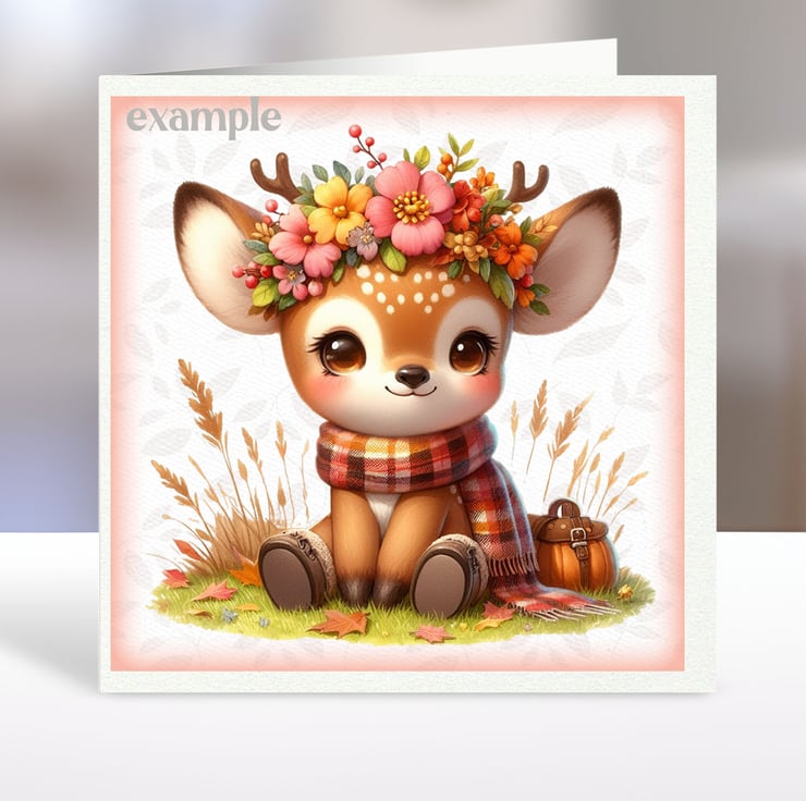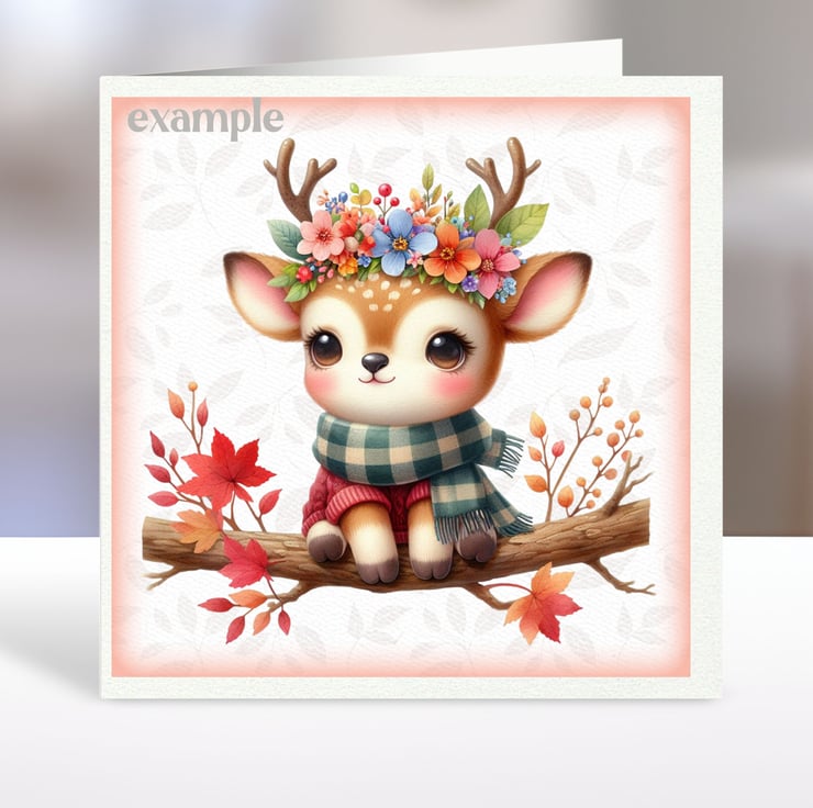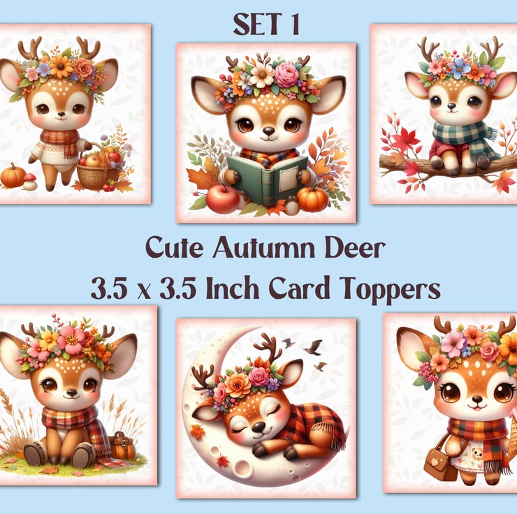 A set of six 3.5 inch square card toppers - Cute Autumn deer - set 1 of 3