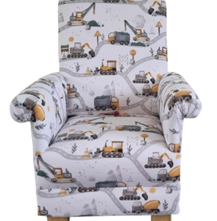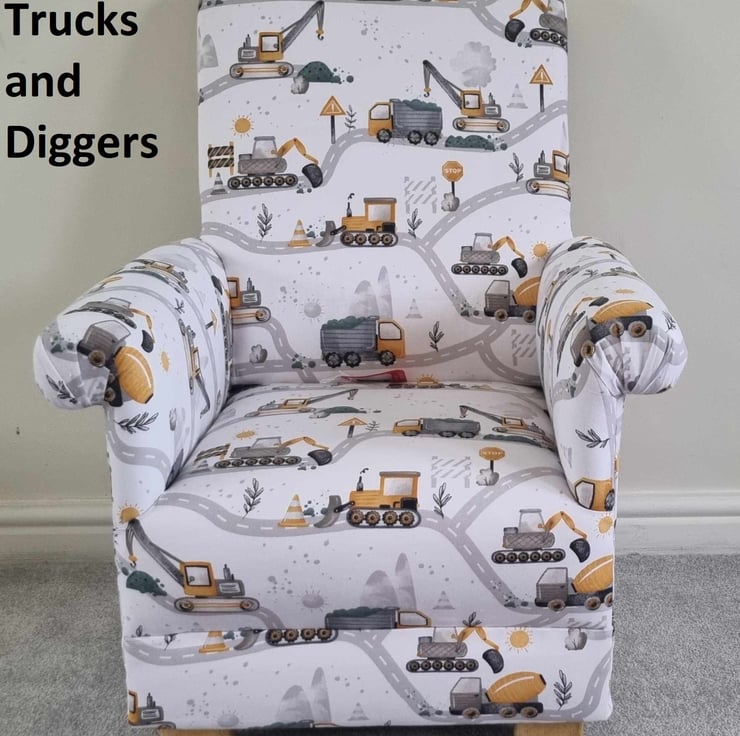 Child's Chair Trucks & Diggers Fabric Boys Armchair Lorry Builders Nursery Kids