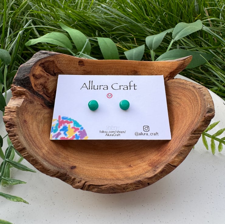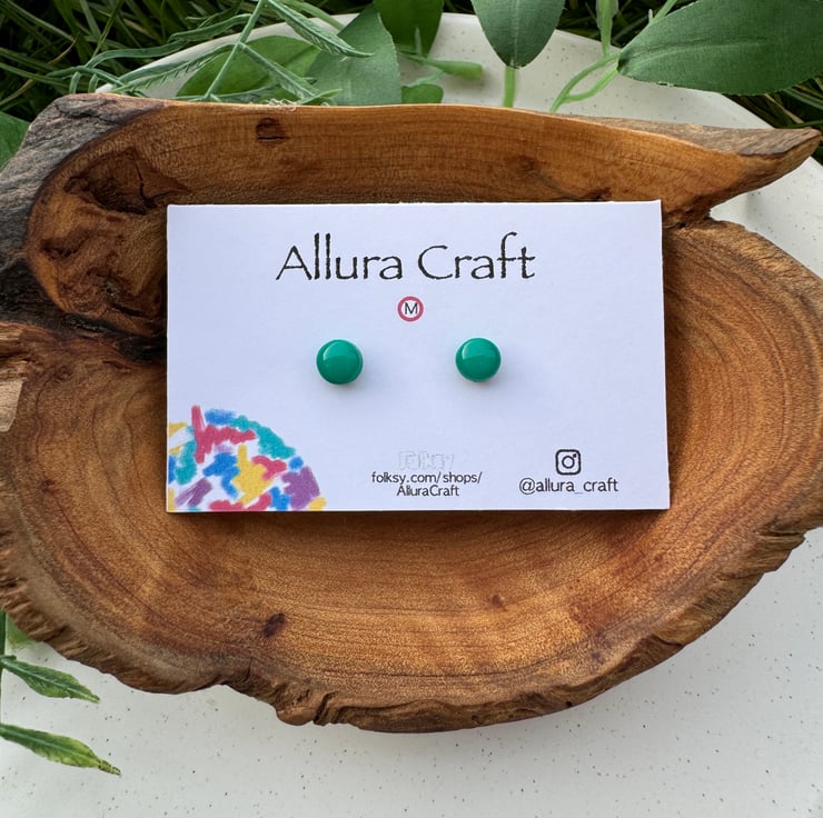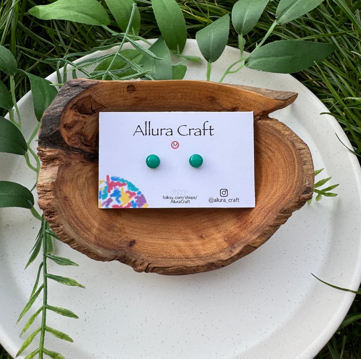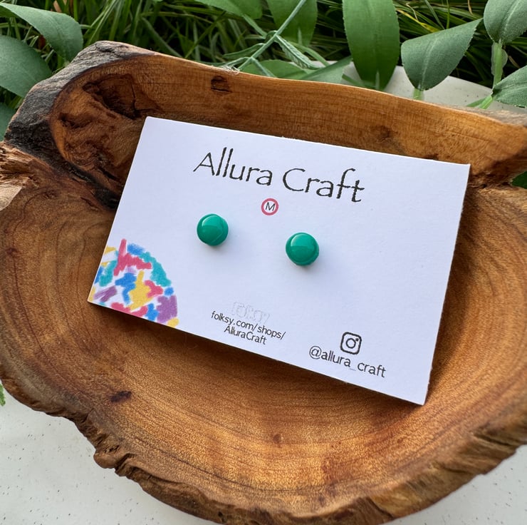 Glossy Uv resin finished, Turquoise little micro circle studs.