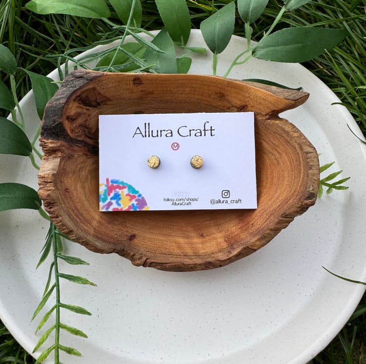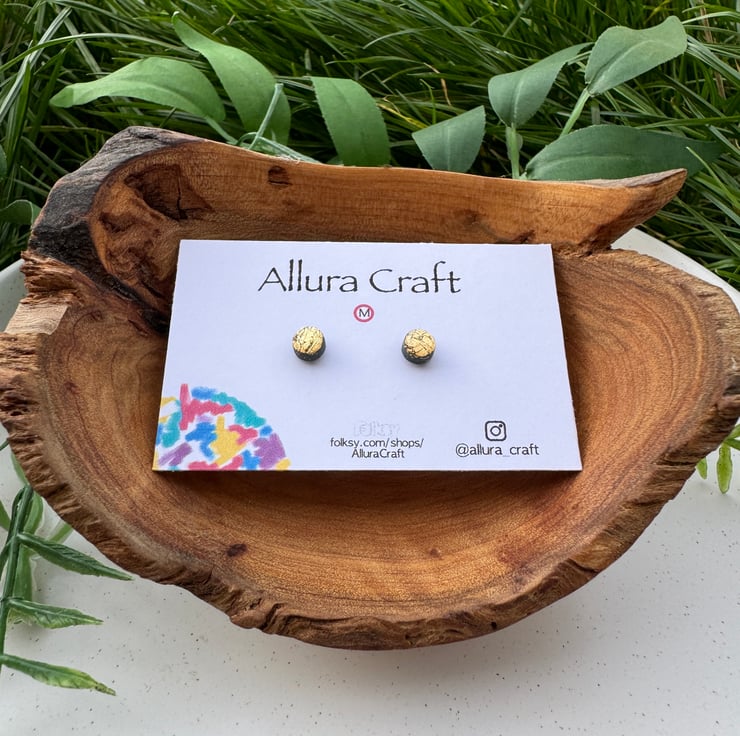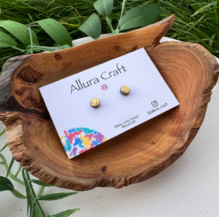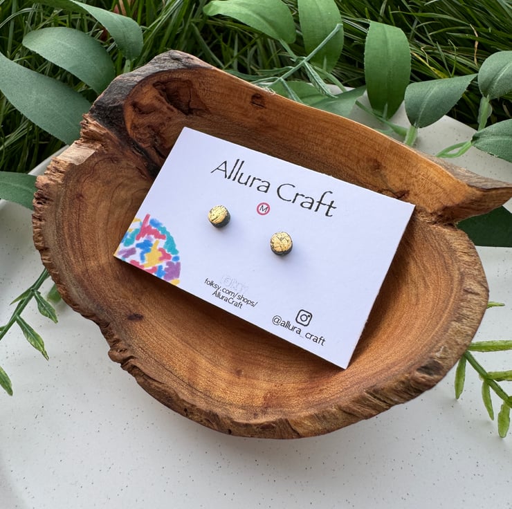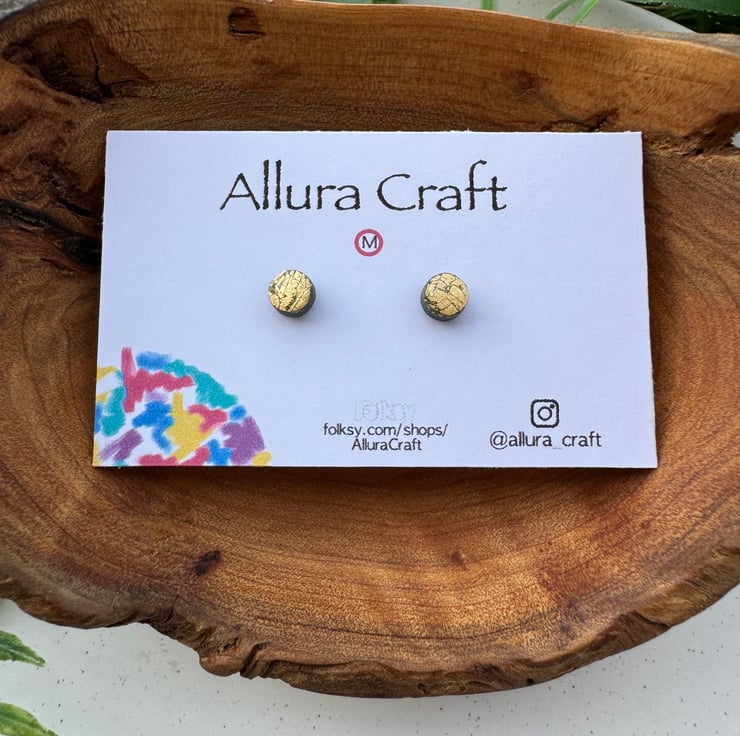 Navy polymer clay base with Gold leaf foil crackle finished, little micro circle studs.
