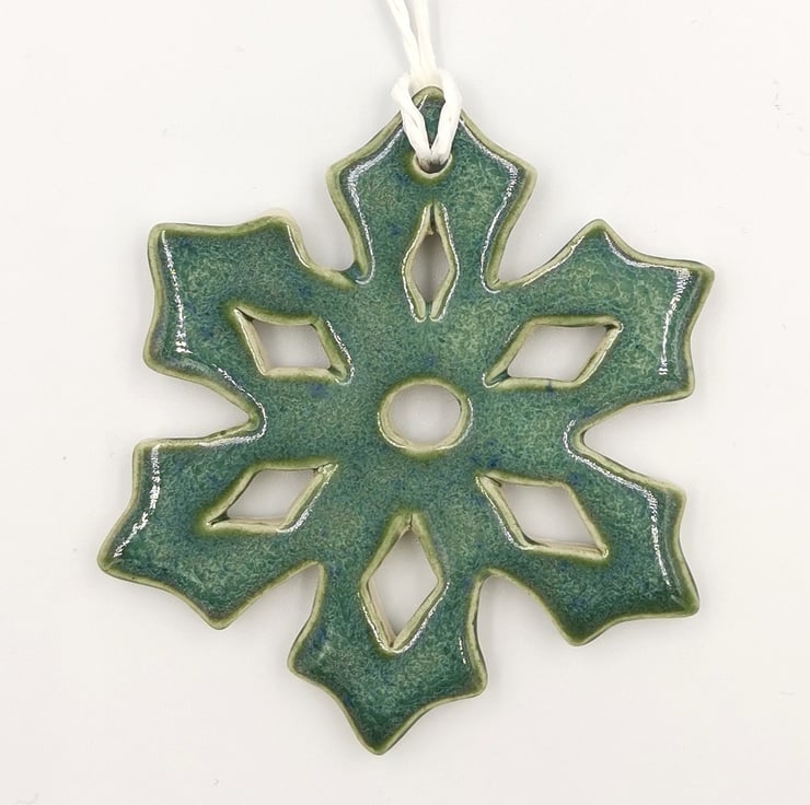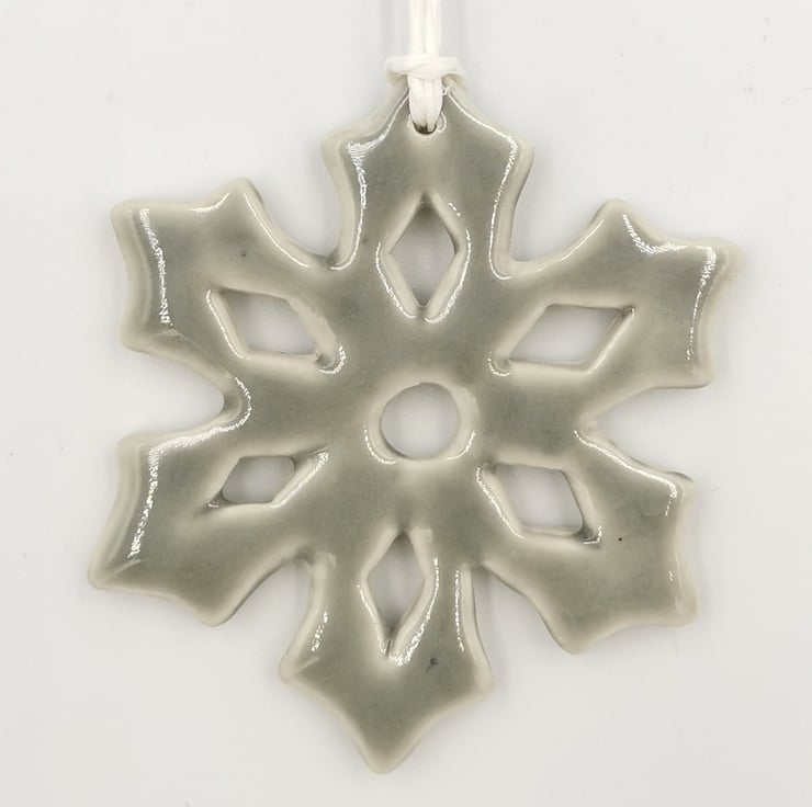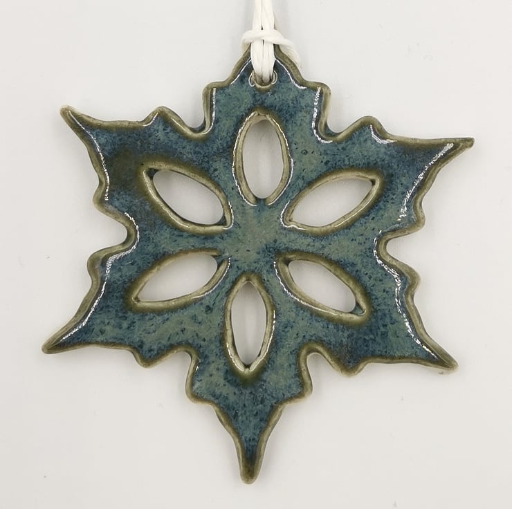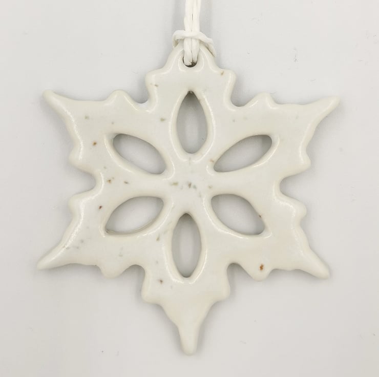Set of 4 handmade ceramic snowflake Christmas tree decorations.