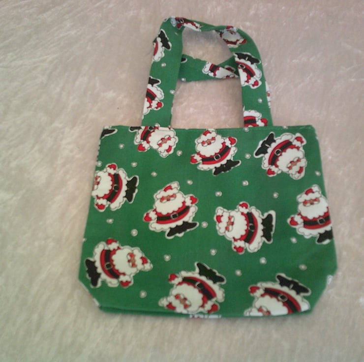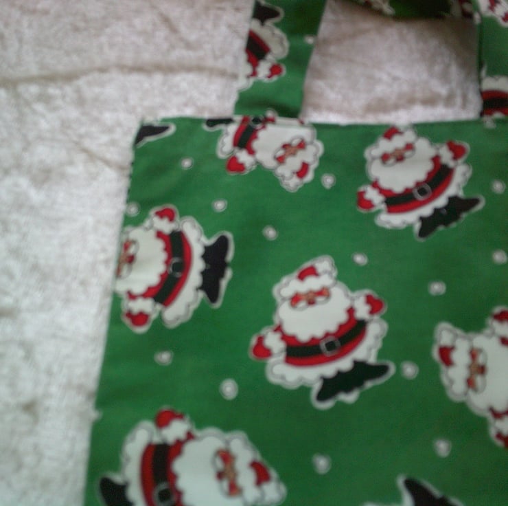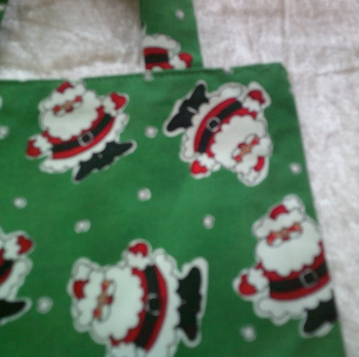This Fabric bag is made using a 100% Cotton Fabric featuring Father Christmas on a festive Green background.