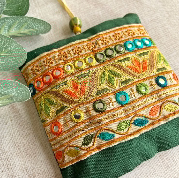 Lavender bag with pretty Indian embroidered trim, lavender pouch, scented gift