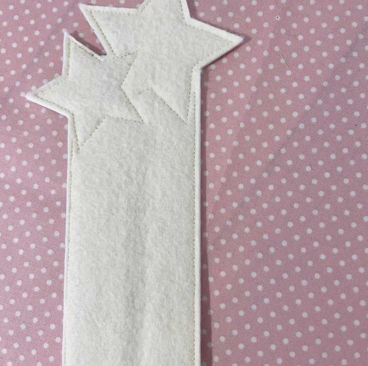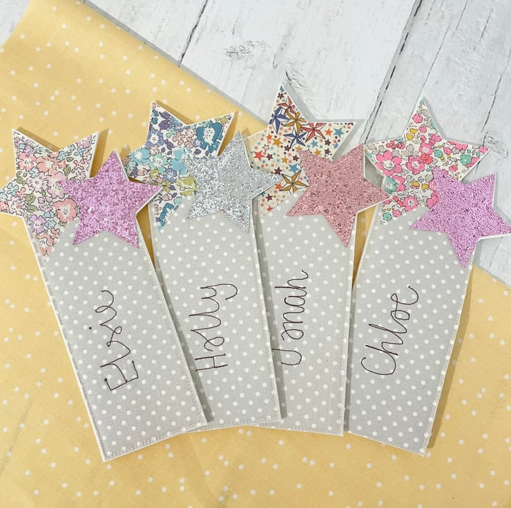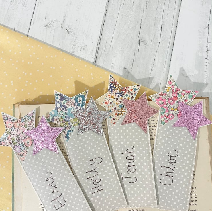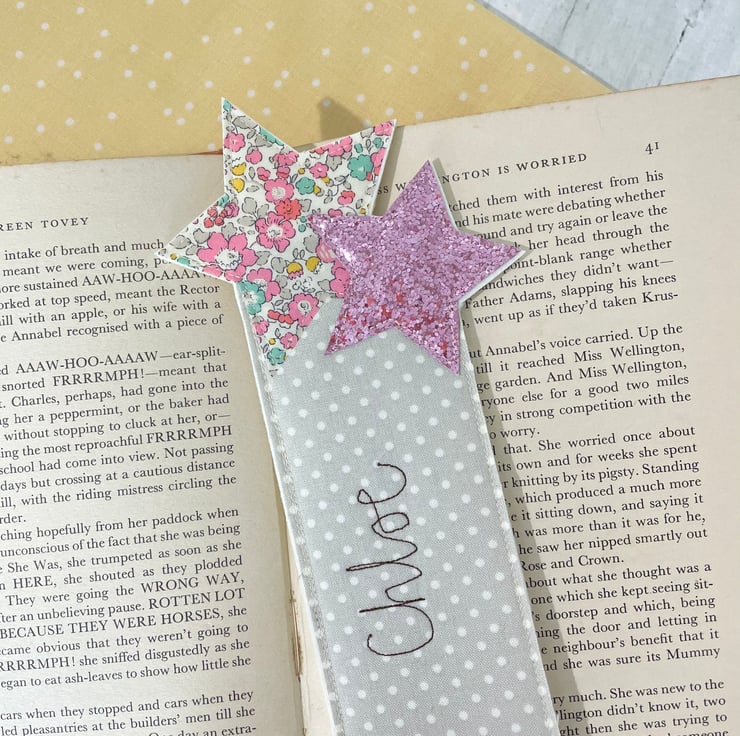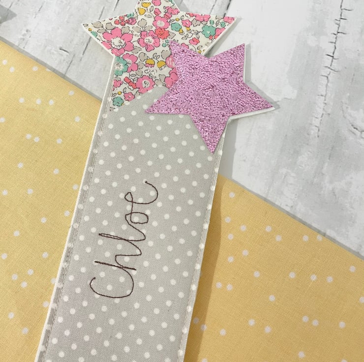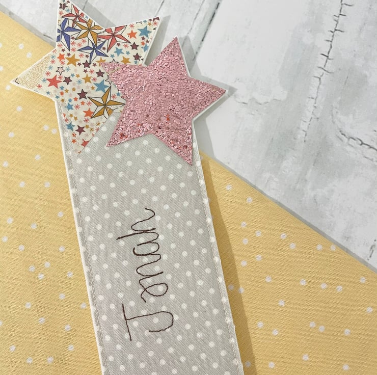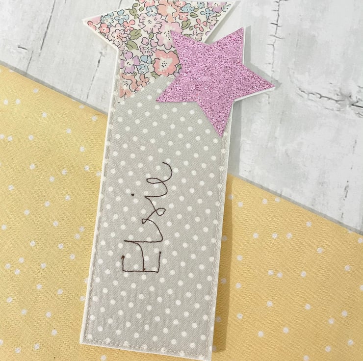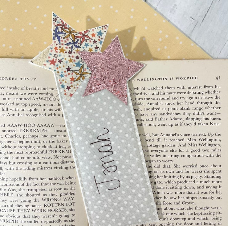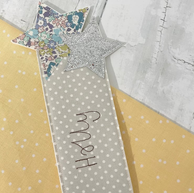 I have made a custom bookmark design with two stars, one in Liberty and the other in sparkly fabric.