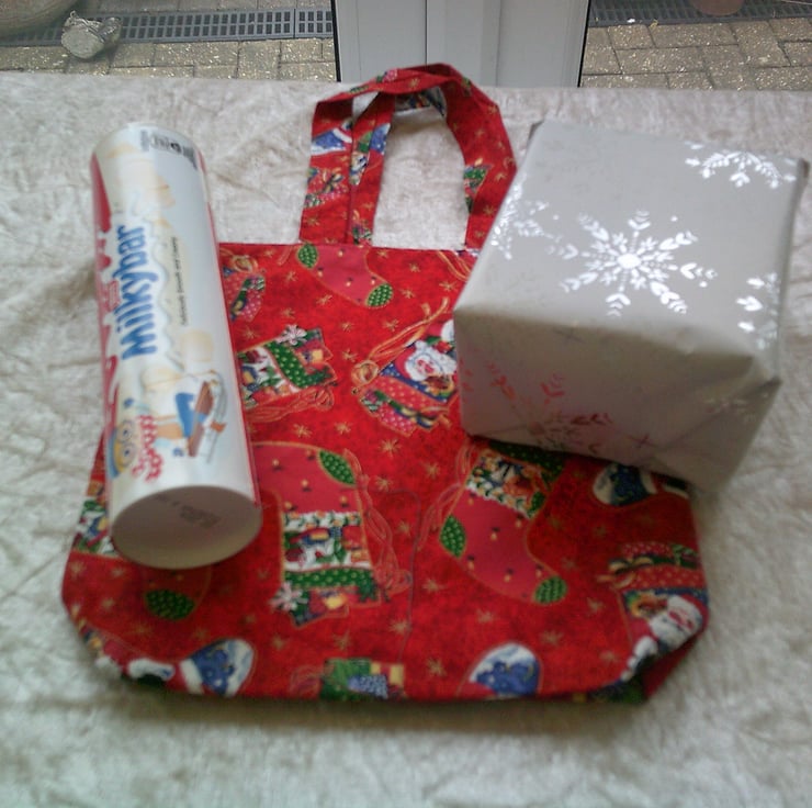 The bag would make an ideal reusable gift bag or Christmas Party Bag.