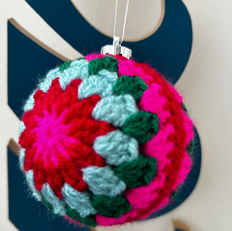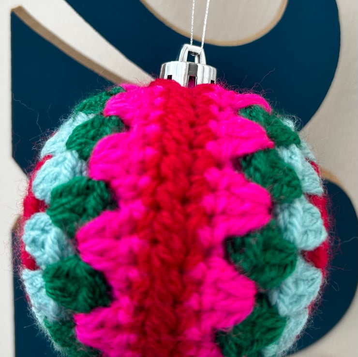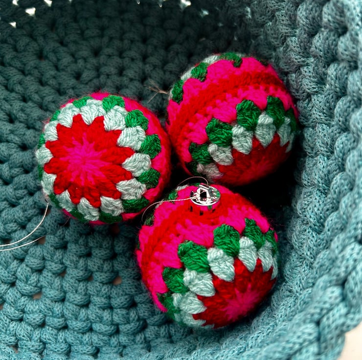 Brighten up your home this Christmas with a set of three cheerful and bright crochet baubles!