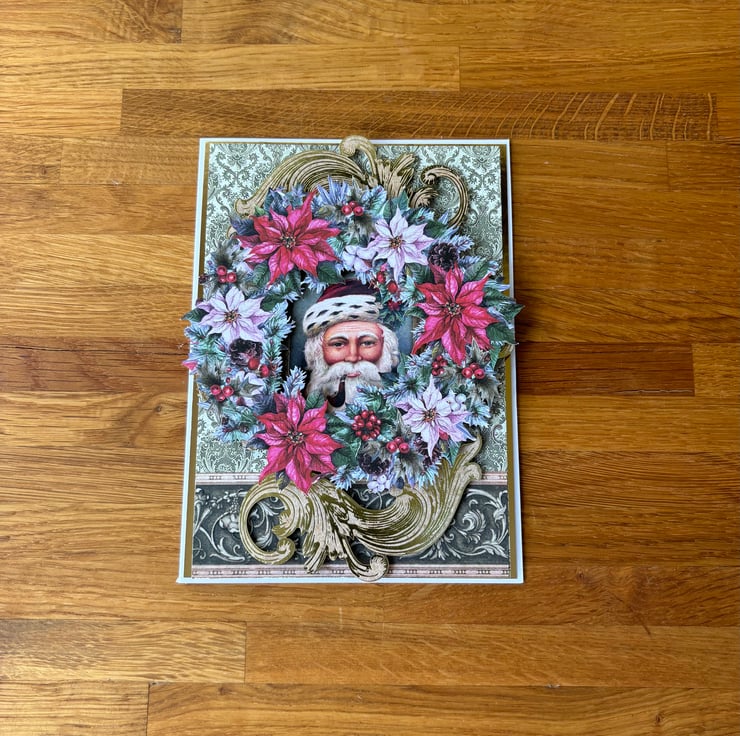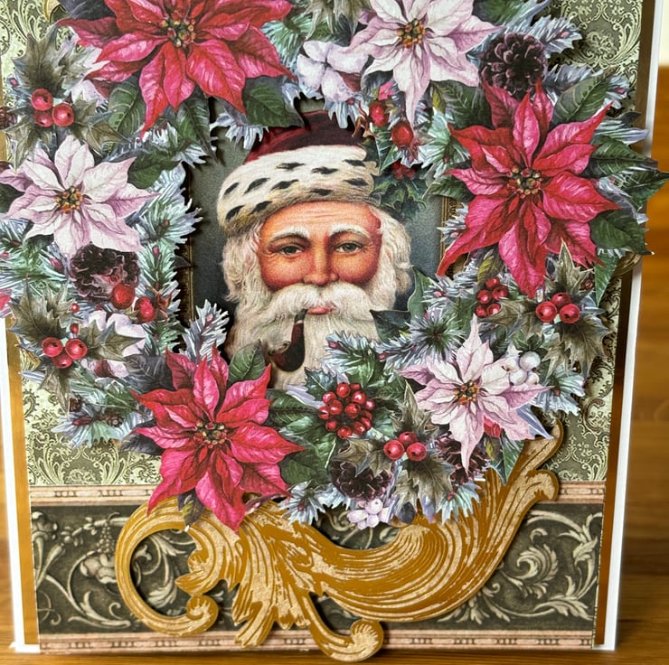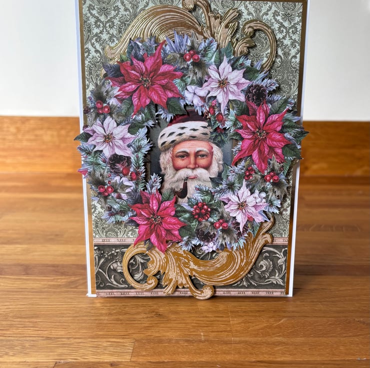 This vintage christmas card is full of christmas cheer and full of traditional colour.