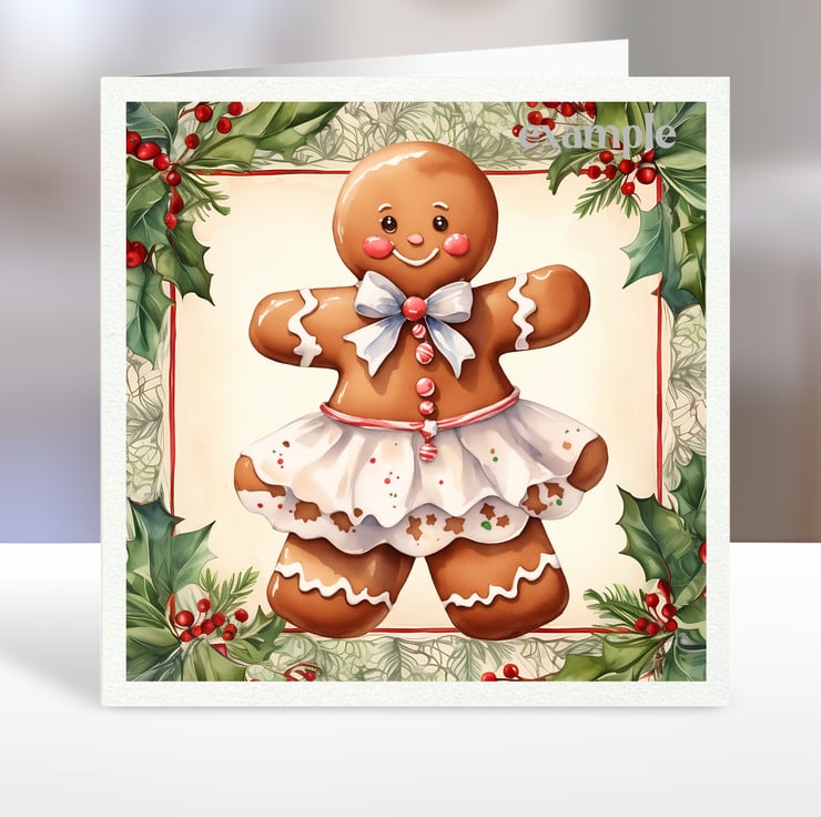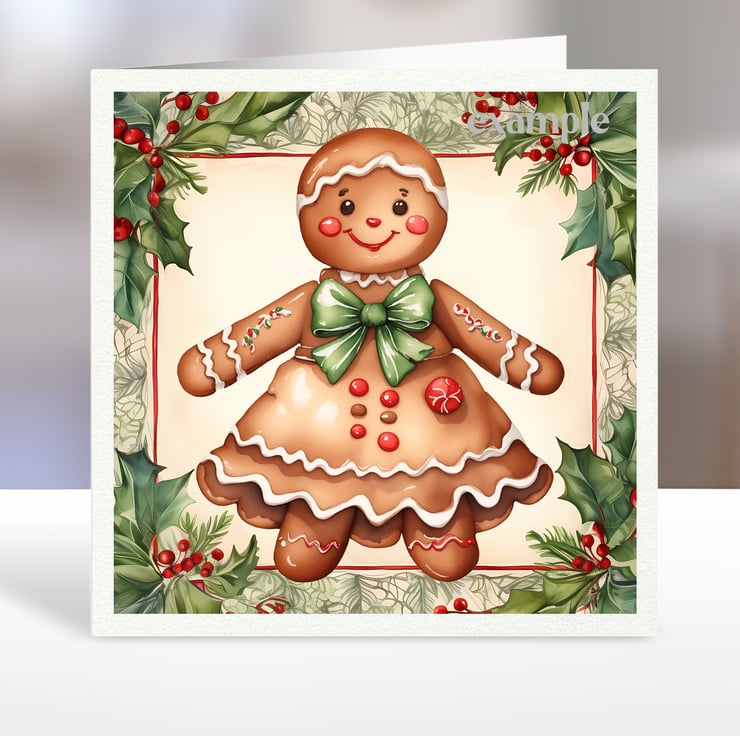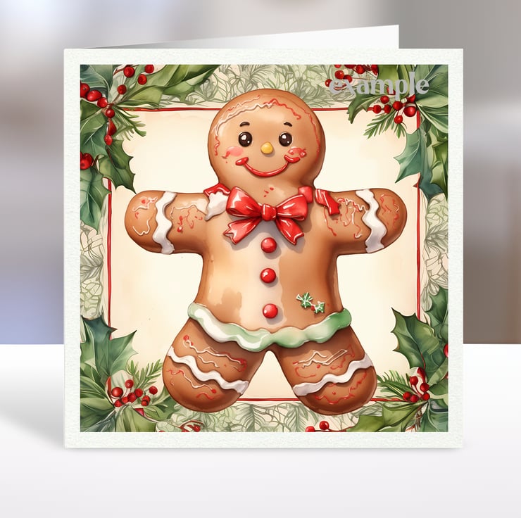 A set of six 3.5 inch square card toppers - Gingerbread cookies - gingerbread men and ladies for Christmas cards, note cards, tags, journal and scrapbook projects.