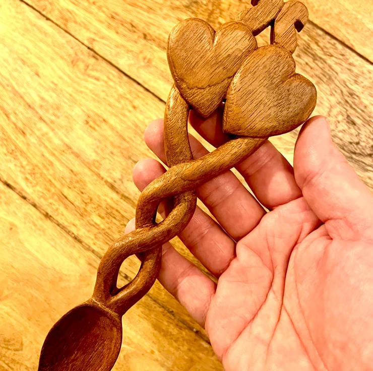 I have always had a soft spot for these love spoons. I trained in Wales and while I was there and came across these ancient tokens of affection where they first originated centuries ago, and was amazed by the variety and scope in their designs, Many motifs have meaning to them, and this helps to make each spoon unique in nature and meaning. There is an extra sense of warmth creating something that honours a tradition from long ago that has its roots in love.